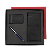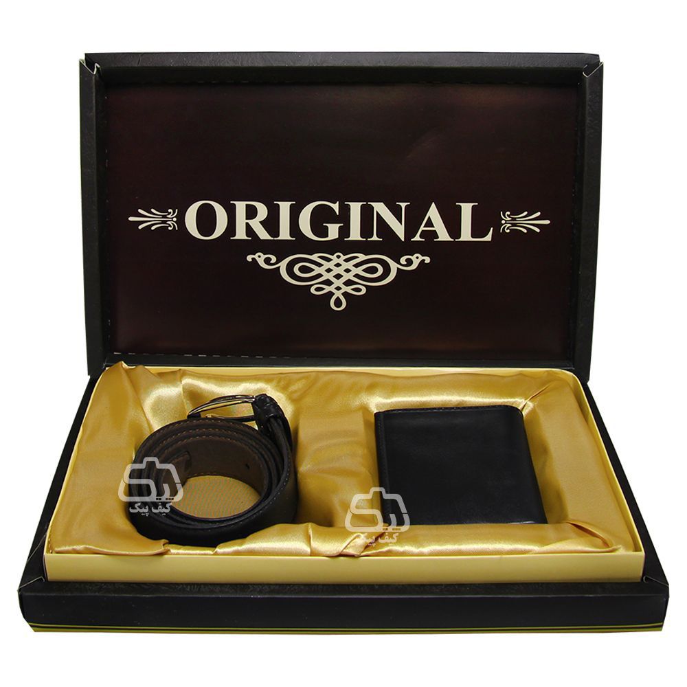 ست چرمی گاوی دو تکه با جعبه مقوایی کیف پول – کمربند در سه رنگ مشکی،قهوه ای و عسلی قابلیت درج لوگو:داغی، لیزر و غیره